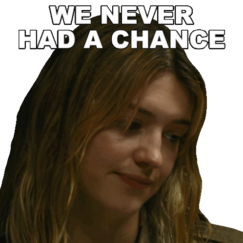 Kate Cooper looks down sadly, expressing resignation with the caption 'We Never Had A Chance'.