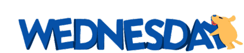 A playful animated sticker featuring a yellow dog celebrating 'Wednesday Hump Day' with a cheerful expression.