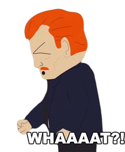 Harrison Yates, the South Park character, reacts with an angry and confused 'WHAAAAT?!' expression, questioning something.