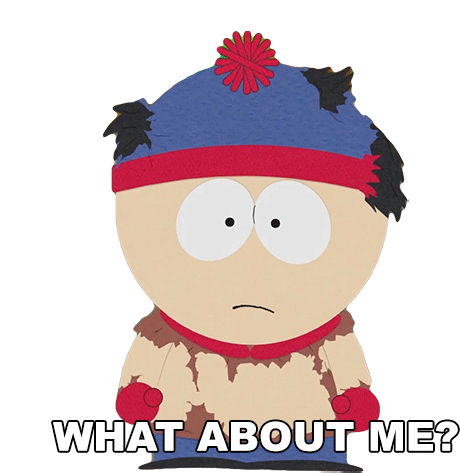 Stan Marsh from South Park looks sad and asks 'What about me?' feeling left out or neglected.