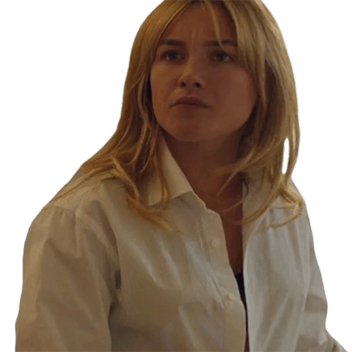 Florence Pugh as Alice Chambers reacts with a confused "WHAT?" expression, perfect for moments of disbelief.