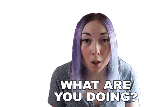Ashnichrist, a woman with purple hair, looks surprised and asks 'WHAT ARE YOU DOING?' with a questioning expression.