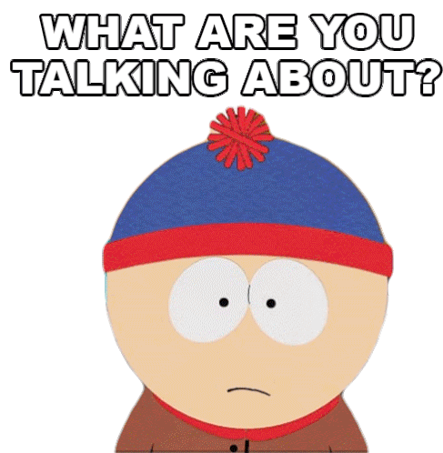 Stan Marsh from South Park asks "What Are You Talking About?" with a confused expression.