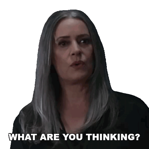 Emily Prentiss from Criminal Minds asks 'WHAT ARE YOU THINKING?' with a serious, questioning look.