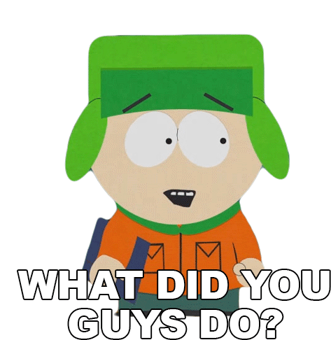Kyle Broflovski from South Park looks shocked and concerned, his mouth slightly open, as he asks, "What did you guys do?"