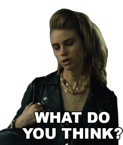 Zoe, played by Lucy Fry from Netflix's Night Teeth, asks 'What Do You Think?' with a direct and confident look.