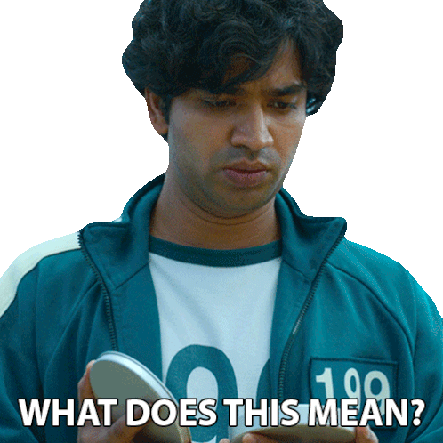 Ali Abdul from Squid Game looks confused, holding an object, with the text 'WHAT DOES THIS MEAN?'