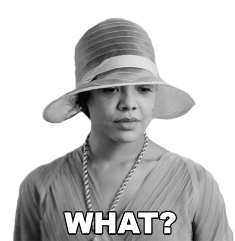 Irene Redfield, portrayed by Tessa Thompson, looks confused with a 'WHAT?' expression, perfect for moments of disbelief or questioning.
