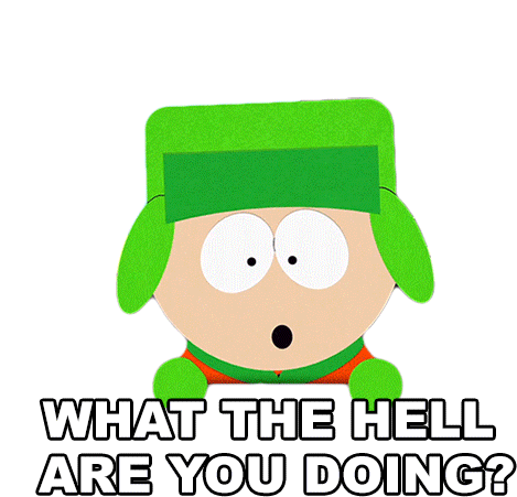 Kyle Broflovski from South Park animatedly asks, "What the hell are you doing?" expressing shock and disbelief.