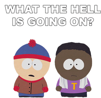 Stan Marsh and Tolkien Black from South Park look confused as the caption asks 'What The Hell Is Going On?'