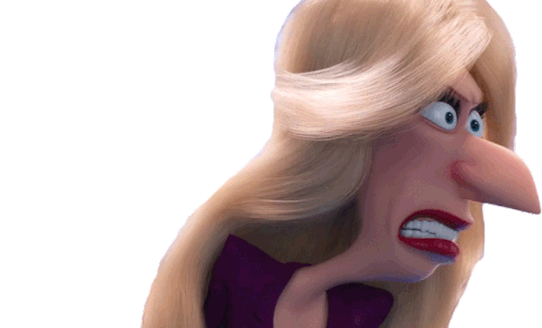 Valerie Da Vinci from Minions Movie shows an angry and annoyed expression, gritting her teeth in frustration.