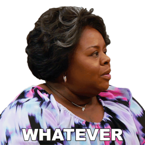 Ella Payne, played by Cassi Davis, shrugs off a comment with a dismissive 'Whatever' in this animated sticker.