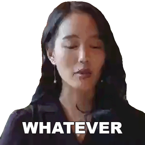 Kaiti Yoo expresses indifference with a clear 'Whatever' caption, conveying a dismissive or unconcerned mood.
