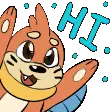 Poggles from League of Legends and Teamfight Tactics greets with a wide-eyed, friendly expression. A cute animated sticker from Riot Games.
