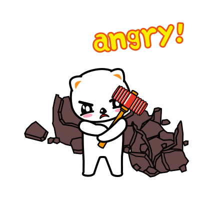 Angry white character smashes a pot with a hammer, expressing rage with the text 'angry!'.
