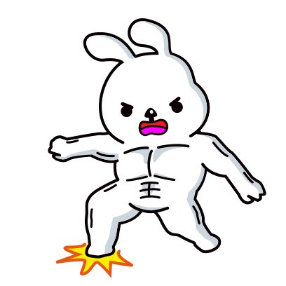 An angry white cartoon rabbit with muscular arms and a determined expression, ready for action.