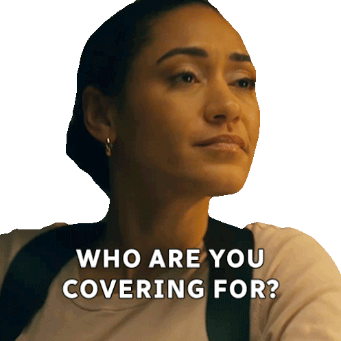 Arch, played by Joséphine Jobert, intensely asks 'Who are you covering for?' in this animated sticker.
