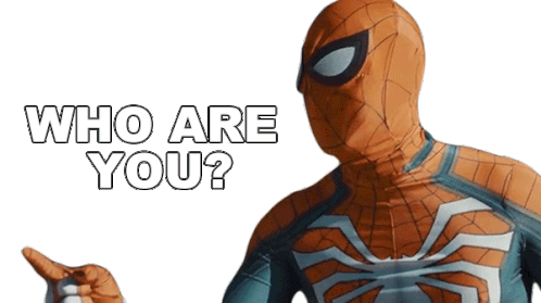 Spider-Man points and asks "WHO ARE YOU?" in this iconic reaction sticker, perfect for expressing confusion.