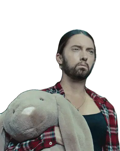 Eminem in a red suit and wig, reacting with 'Whoa, Wait A Minute Bitch' text overlay. Perfect for a surprised pause.