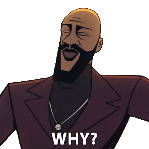 Commander from Agent Elvis laughs heartily while asking 'Why?', expressing amusement or disbelief.