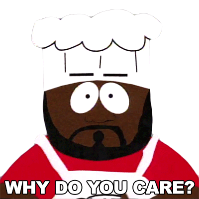 Jerome McElroy, the iconic South Park character, asks "Why do you care?" with a questioning expression.