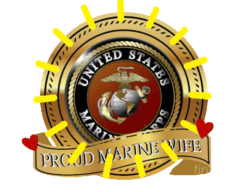 a united states marine corps emblem with a proud marine wife banner