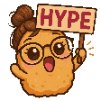Wifey Nuggets, a cute pixelated potato character, excitedly holds a "HYPE" sign.