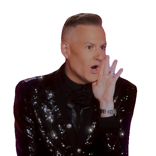 Ross Mathews, wearing a sequined jacket, is shown with his mouth wide open in a scream or shout, expressing shock.