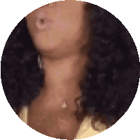 A pixelated, circular close-up of a person's neck and lower face, showing a reaction of surprise or shock, with a stylized effect.