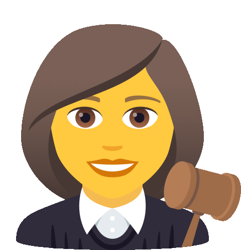 a judge with a yellow face is smiling and holding a judge 's gavel