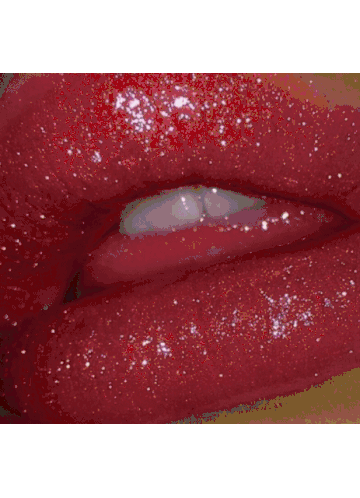 A close-up of vibrant red lips and tongue licking a dark red lollipop, creating a sensual and playful visual.