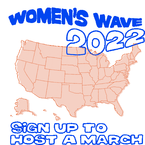 Animated sticker for Women's Wave 2022, encouraging sign-ups to host marches across the United States.