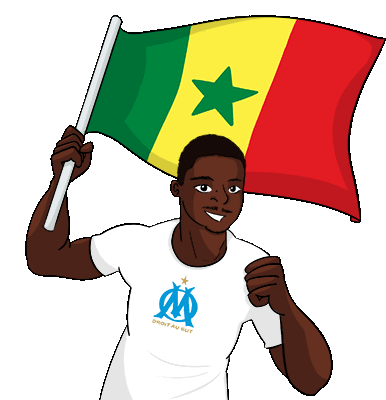 a man wearing a shirt that says " droit au but " holds a flag