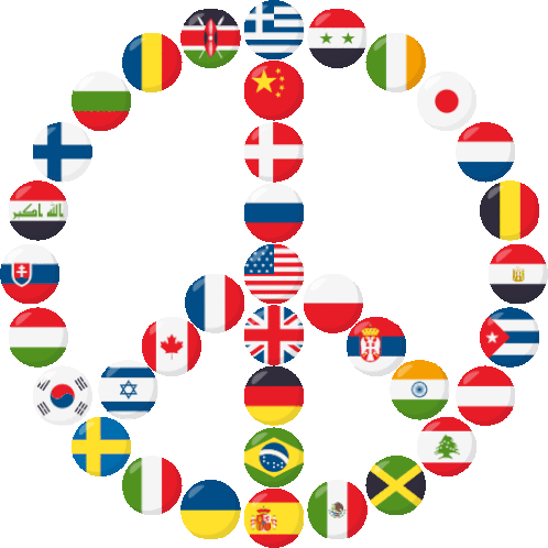 a peace sign is made up of flags from many countries