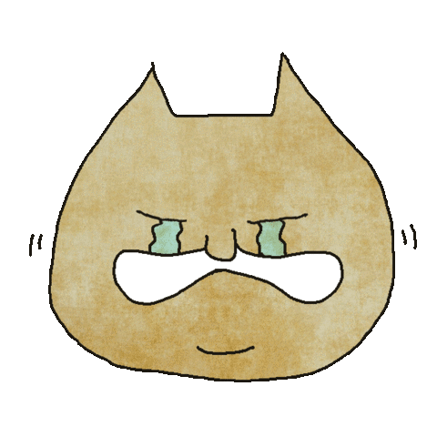 An animated drawing of a cat with tears in its eyes, conveying a worried and sad emotion.