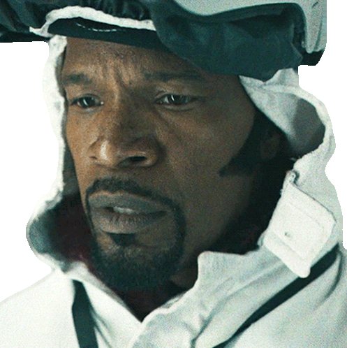 Jamie Foxx as Slick Charles from They Cloned Tyrone looking worried and troubled, conveying a sense of unease.