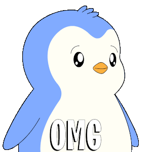 A cute blue and white penguin with 'OMG' on its belly, showing a shocked and surprised reaction with wide eyes.