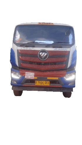 a red white and blue truck has a license plate that says b 9624 ufz