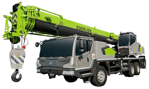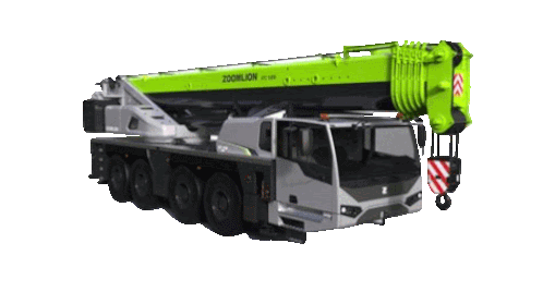 a zoomlion truck with a crane attached to the back of it