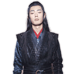 Xiao Zhan as Wei Wuxian from The Untamed, looking pensive in his dark robes.