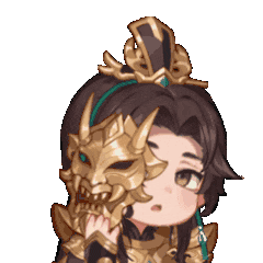 Xioling from Legend of Phoenix, a chibi character, holds a golden mask and shows confusion with a question mark.