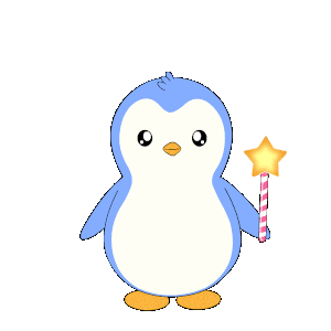 A cute cartoon penguin uses a magic wand to transform into a shimmering XRP Ripple cryptocurrency coin.