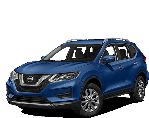 a blue nissan rogue is sitting on a white background
