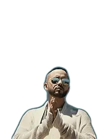Yandel expresses relief, pointing and then placing his hand on his chest, with the text 'Ya No Tengo Sed' (I'm no longer thirsty).