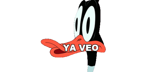 Daffy Duck, known as Lucas, with wide eyes and an open beak, displaying the Spanish phrase 'Ya Veo' (I see).