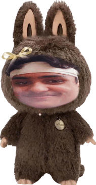 a stuffed animal with a man 's face on it is wearing bunny ears