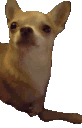 a chihuahua dog is laying down and looking at the camera .