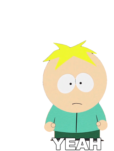 Butters Stotch from South Park looks surprised or concerned, with the word 'YEAH' appearing below him as a reaction.