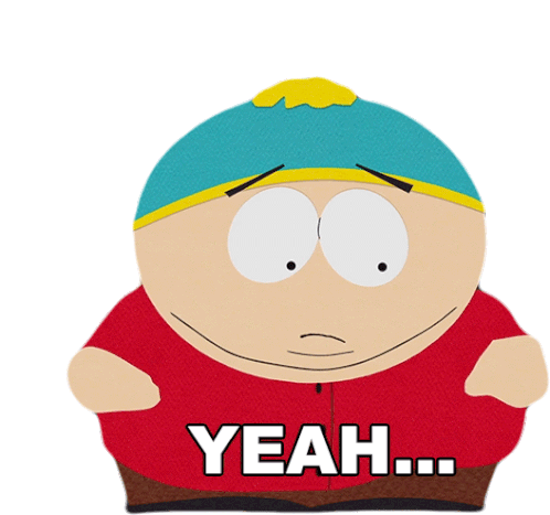 Eric Cartman from South Park emphatically saying 'Yeah...' with a characteristic expression, perfect for agreement.
