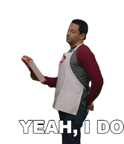 Kurt Warner, portrayed by Zachary Levi, holds a cereal box and confidently says 'Yeah, I do'.